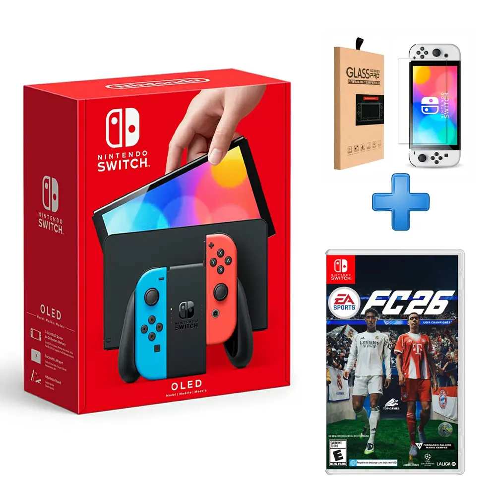 Consola Nintendo Switch OLED (Neon): Estilo atrevido y moderno. La pantalla OLED de 7 pulgadas ofrece colores intensos y un contraste espectacular, haciendo que la experiencia de juego en FC 26 sea mucho más inmersiva.