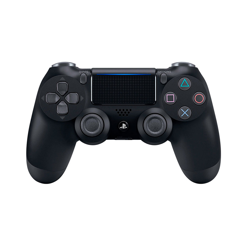 El pack contiene el mando físico original en color negro mate, altavoz integrado para efectos de sonido adicionales, conector de 3.5 mm para auriculares, botón "SHARE" para transmitir tus partidas al instante y batería recargable mediante cable micro-USB.